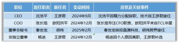 从2024年12月至2025年3月,TCL中环管理层经历多轮调整: