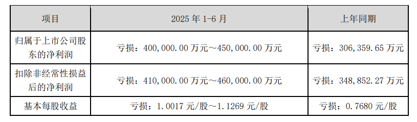 获悉,7月9日,TCL中环发布《2025年半年度业绩预告》。公告显示,公司预计2025年上半年实现归母净利润亏损为40亿元到45亿元。其中,第一今年一季度亏损19.06亿,那么二季度亏损大概21-26亿。