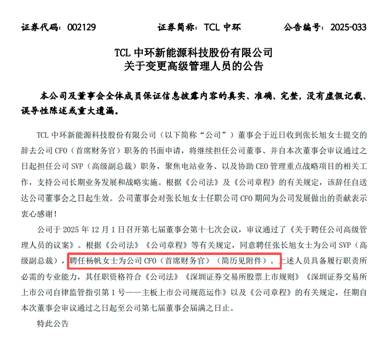 TCL中环 的连续亏损和CFO调整提醒行业:周期无法避免,但风险可以管理。