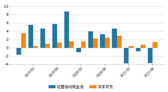 在净利润走低的同时,公司今年前三季度经营活动产生的现金流量净额为-3.66亿元,比去年同期减少210.70%。