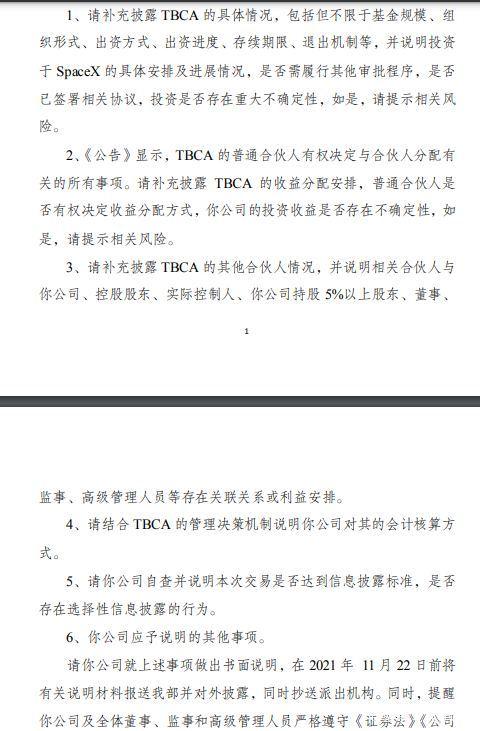 利欧股份这个吸引眼球的公告出来、股价异动后,交易所立马下发关注函,询问公司这笔投资究竟靠谱还是不靠谱。具体提出来6个问题,并要求公司在11月22日前进行答复。
