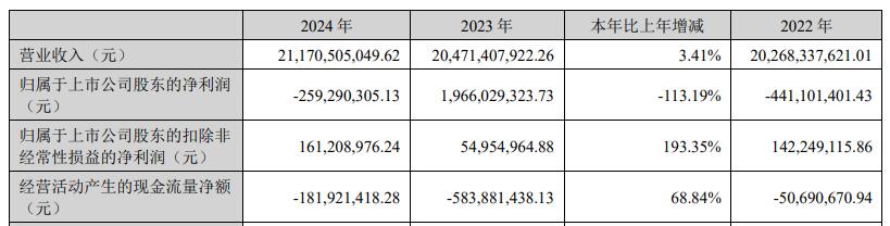 2021年至2024年,利欧股份营收分别为202.81亿元、202.68亿元、204.71亿元、211.71亿元;归母净利润分别为-10.12亿元、-4.41亿元、19.66亿元、-2.59亿元;扣非净利润分别为-14.63亿元、1.42亿元、5495.50万元、1.61亿元;经营活动产生的现金流量净额分别为-4.99亿元、-5069.07万元、-5.84亿元、-1.82亿元。