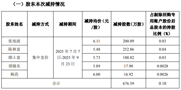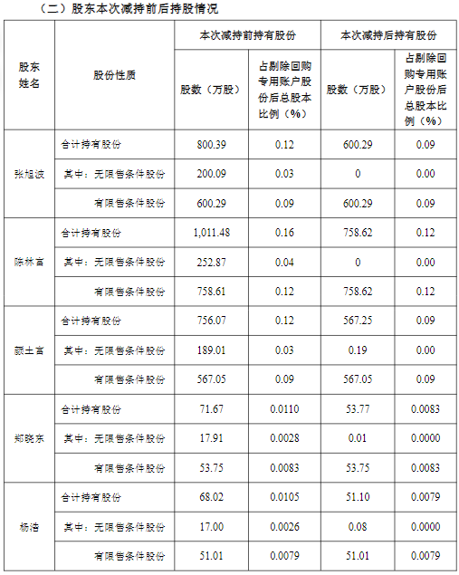 结合持股股份的性质来看,上述5人基本上将持有的无限售条件股份都卖完了。具体来看,董事会秘书张旭波减持200.09万股,减持后无限售条件股份数量为零;原董事陈林富减持252.86万股,减持后无条件限售股份数量为零;副总经理颜土富减持188.82万股,减持后无限售条件股份数量仅有0.19万股;副总经理郑晓东减持17.90万股,减持后无条件限售股份数量为0.01万股;财务总监杨浩减持16.92万股,减持后无条件限售股份数量为0.08万股。