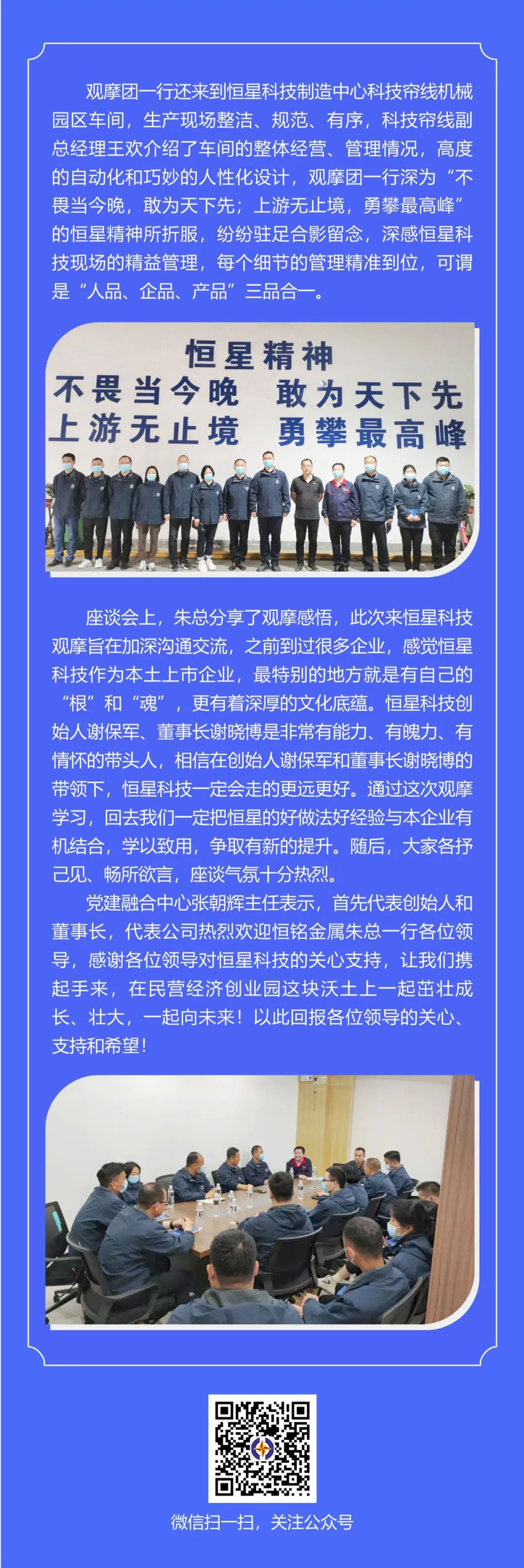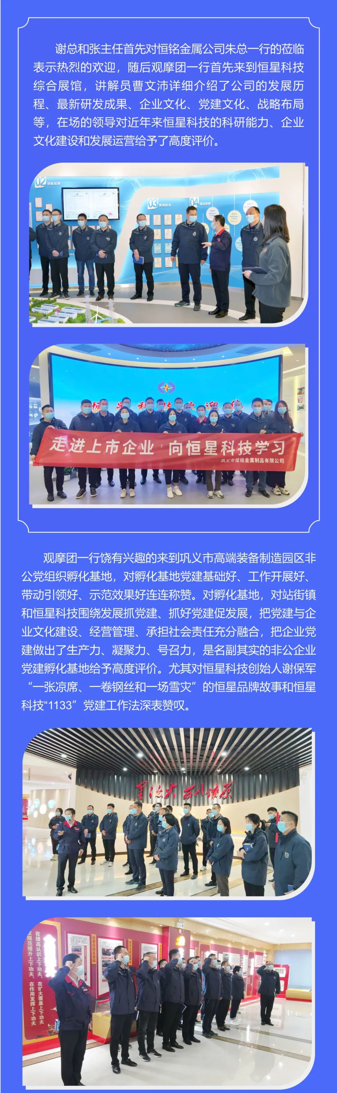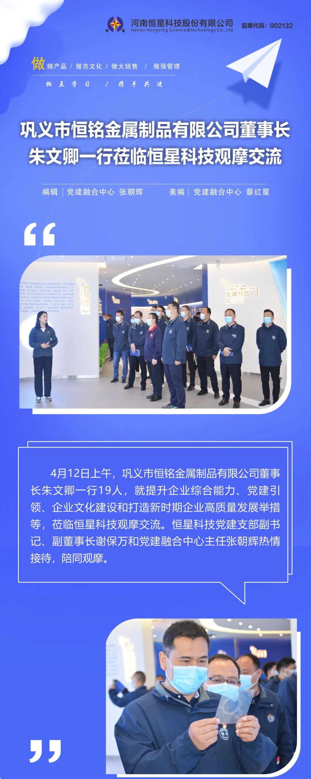 【党建融合中心】巩义市恒铭金属制品有限公司董事长朱文卿一行莅临恒星科技观摩交流