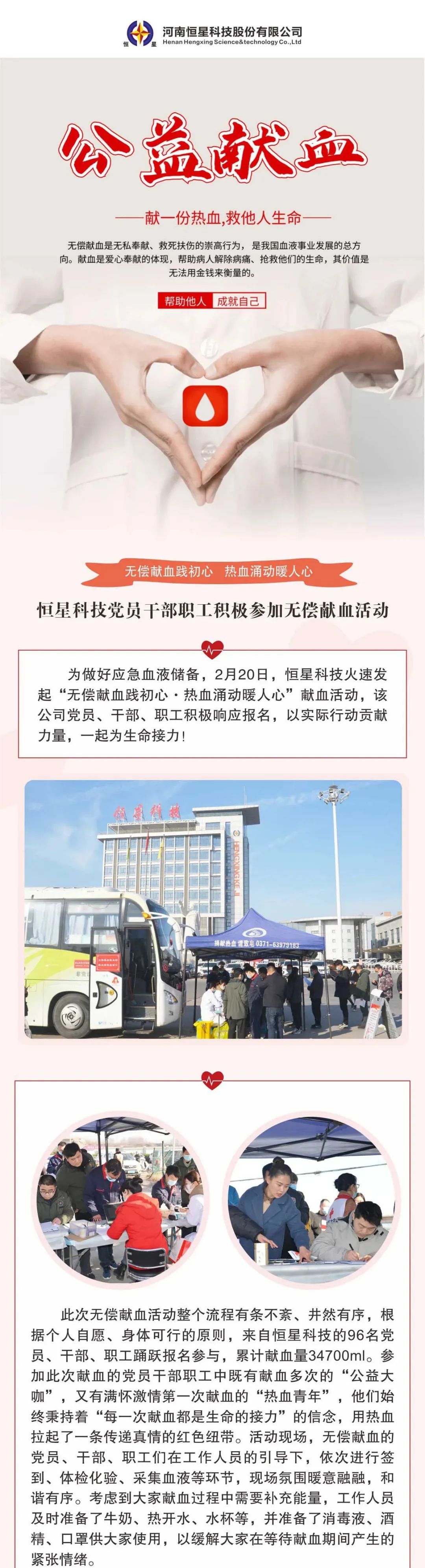 无偿献血践初心 热血涌动暖人心 ——恒星科技党员干部职工积极参加无偿献血活动