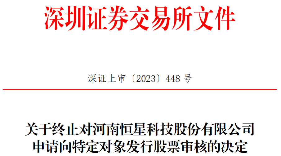 深交所网站昨日披露了关于终止对河南恒星科技股份有限公司申请向特定对象发行股票审核的决定。