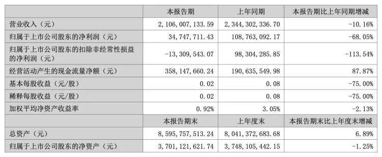 下游市场不景气,公司上半年净利同比降68.05%