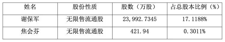 据公告,谢保军、焦会芬系董事长谢晓博及总经理谢晓龙之父母,未在公司担任董事、监事、高级管理人员职务。