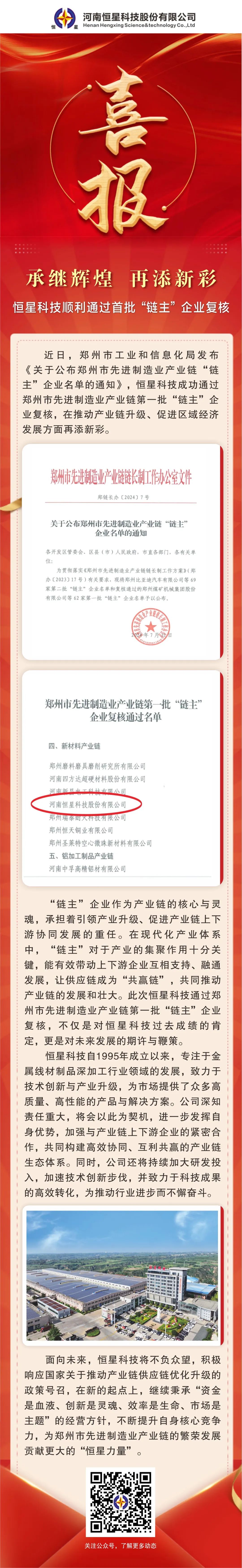 【承继辉煌 再添新彩】恒星科技顺利通过首批“链主”企业复核