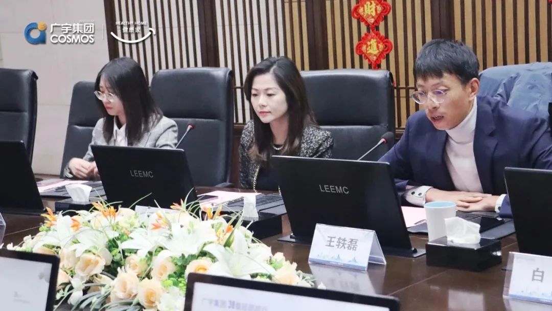 随后,何黎斌书记一行与广宇集团进行了深入充分的座谈研讨。广宇集团董事长王轶磊就广宇集团的集团战略和发展情况,向领导一行做了详细介绍。