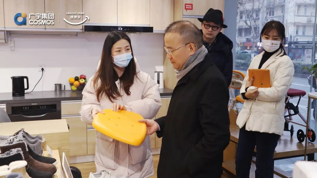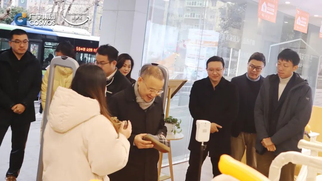 何黎斌书记一行首先考察了位于平海路的广宇安诺长者生活馆。考察过程中,广宇集团董事长王轶磊向何黎斌书记一行展示了展厅内各类养老辅助用具及适老化卫生间样板房,并详细介绍了广宇安诺在养老辅具及适老化改造等方面所做的工作,领导一行参观了展厅中各类适老、养老辅具用具,对其实用性与安全性表示赞许,希望广宇安诺持续致力康养产业的发展,造福老年群体颐养天伦之乐。