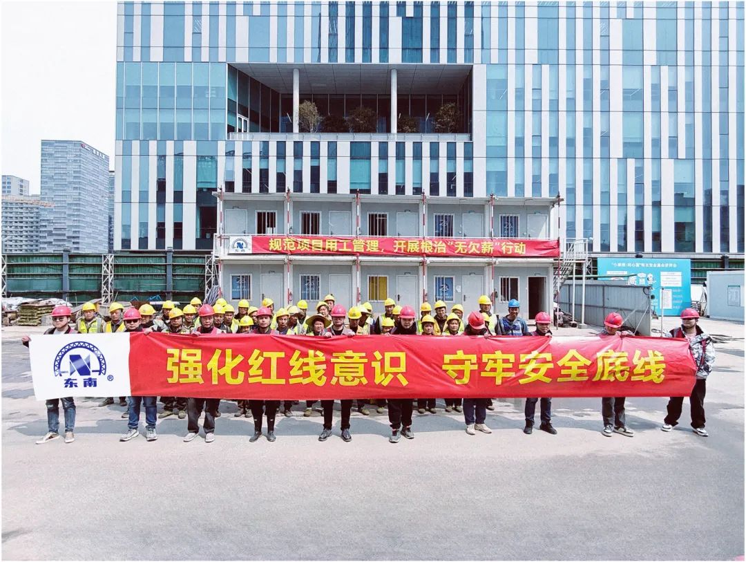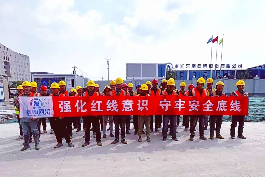 2025年4月是东南网架第9个“安全生产月”。为切实加强安全生产管理,消除事故隐患,筑牢安全防线,促进企业健康发展,4月1日上午,股份公司、各子公司、各在建工程项目紧紧围绕今年的安全生产月主题“强化红线意识守牢安全底线”,开展了安全生产月启动仪式,通过安全表态发言、岗位责任落实签名、授安全旗等形式多样的活动,全面奏响人人讲安全、事事为安全的主旋律,标志着2025年公司安全生产月正式拉开序幕。