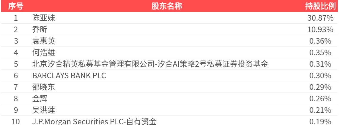 公司股东户数为9.48万户,前十大股东持股数量为2.54亿股,占总股本比例为44.06%,前十大股东持股情况如下: