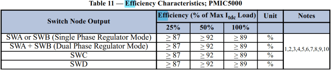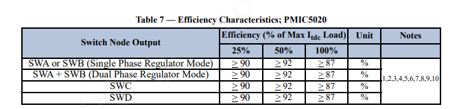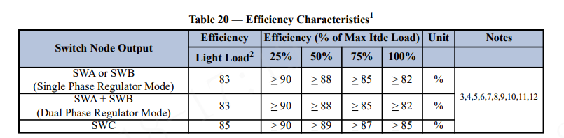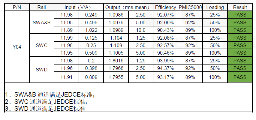 ?测试条件:SWA/B双相通道@Vin12V, Vout1.1V,频率500KHz PMIC 5020: