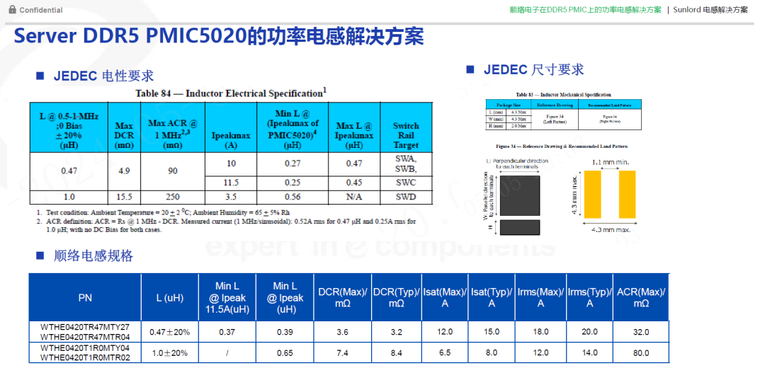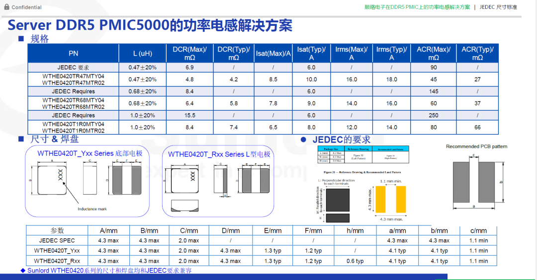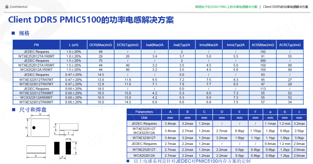 为了满足终端客户对DDR5电感的需求,顺络电子推出的低损耗系列产品,WT系列搭配WCX系列方案,实现了高性能、高可靠性和更低成本,为DDR5的推广普及助力。目前顺络电子的DDR5电感方案已经在众多海外PMIC厂家测试认证并通过JEDEC效率标准。
