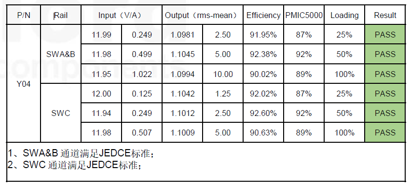 DDR4:在50%峰值电流负载下电压转换效率要求高于90%。
