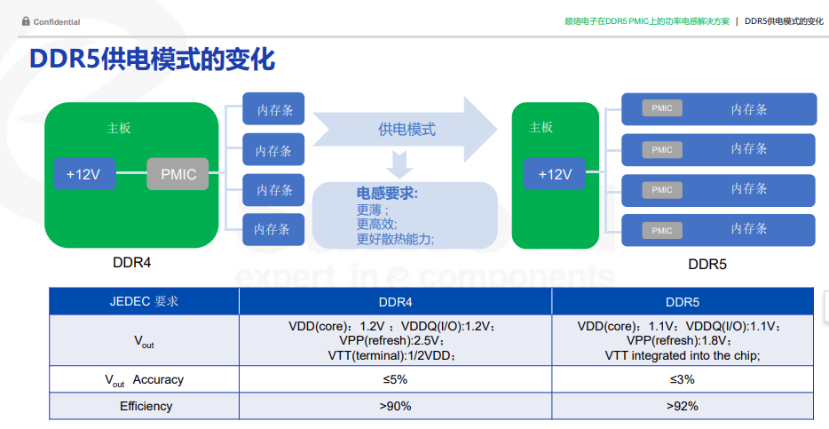 DDR5:在50%峰值电流负载下电压转换效率要求高于92%,更高的效率要求。