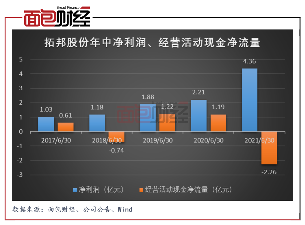 另一方面,2021年上半年,拓邦股份经营活动产生的现金流量净额为-2.26亿元,与去年同期相比减少34484万元,减少幅度达289.45%,主要系当期存货和经营性应收项目的增加。