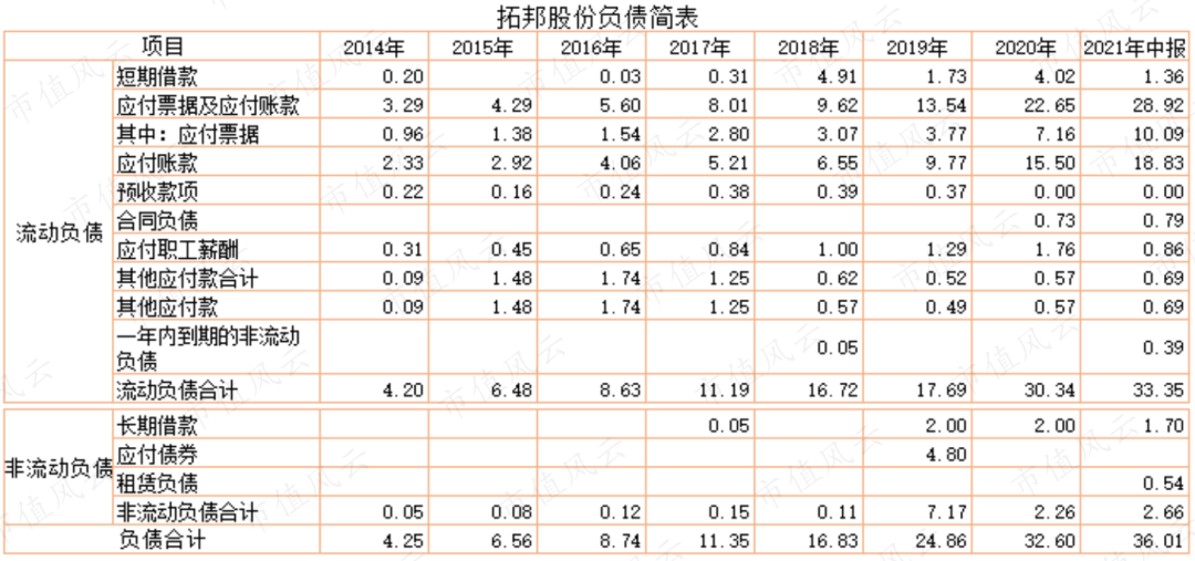 2019年以来,应付票据及应付账款增加非常快,2021年6月底接近29亿元,其中10亿元为应付票据,18.9亿元为应付账款。