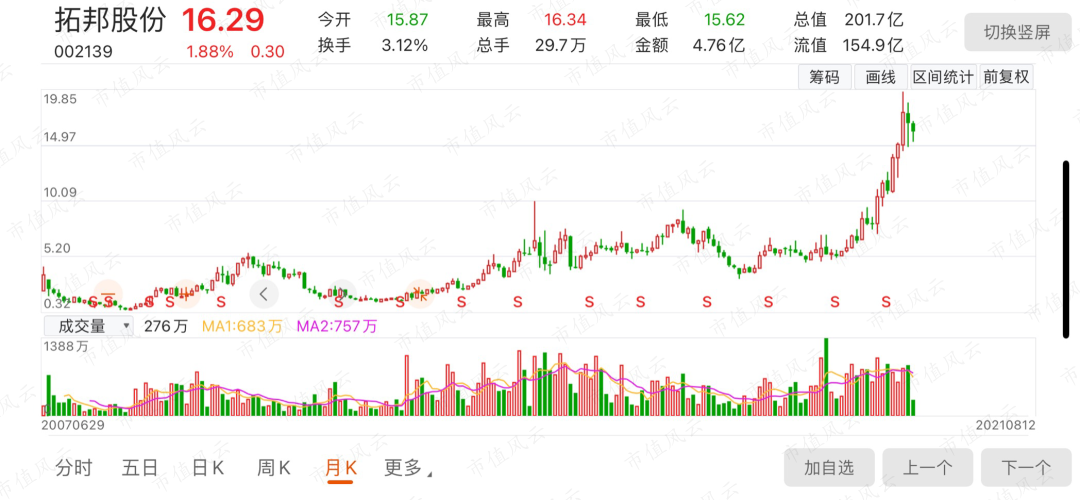 必须要提的是,当天拓邦股份的收盘价是15.05亿元,也就是说,参与定增的机构当日就有了32%的浮盈。该部分定增股份(9210.53万股)将于2021年12月3日到解禁期。