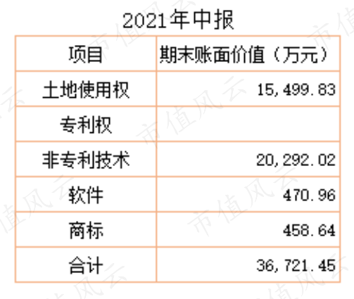 拓邦股份的无形资产主要包括土地使用权和非专利技术两大类,而后者占无形资产的2/3。