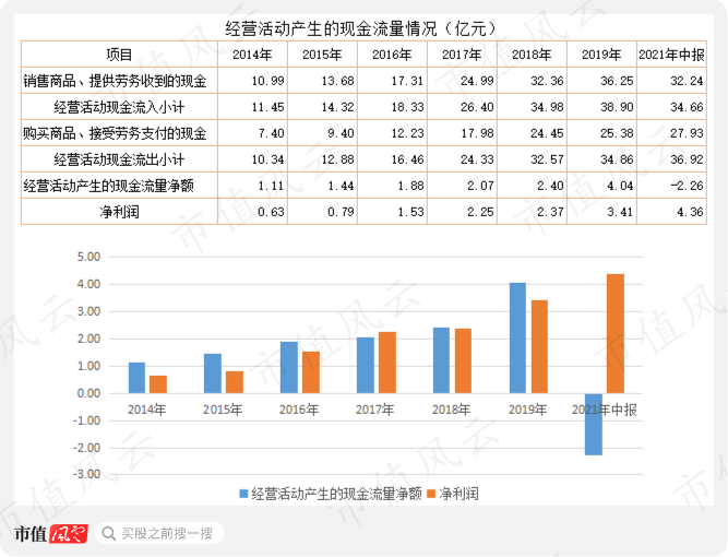 此外,存货的激增除了影响当期利润外,还影响着现金流,上半年经营性现金流净流出2.26亿元,而2020年上半年为净流入1.19亿元。