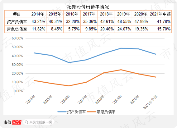 2021年6月底,拓邦股份的带息负债率不到16%,较2019年有明显下降,主要原因是定增资金到位后偿还了约3.7亿元的短期借款。