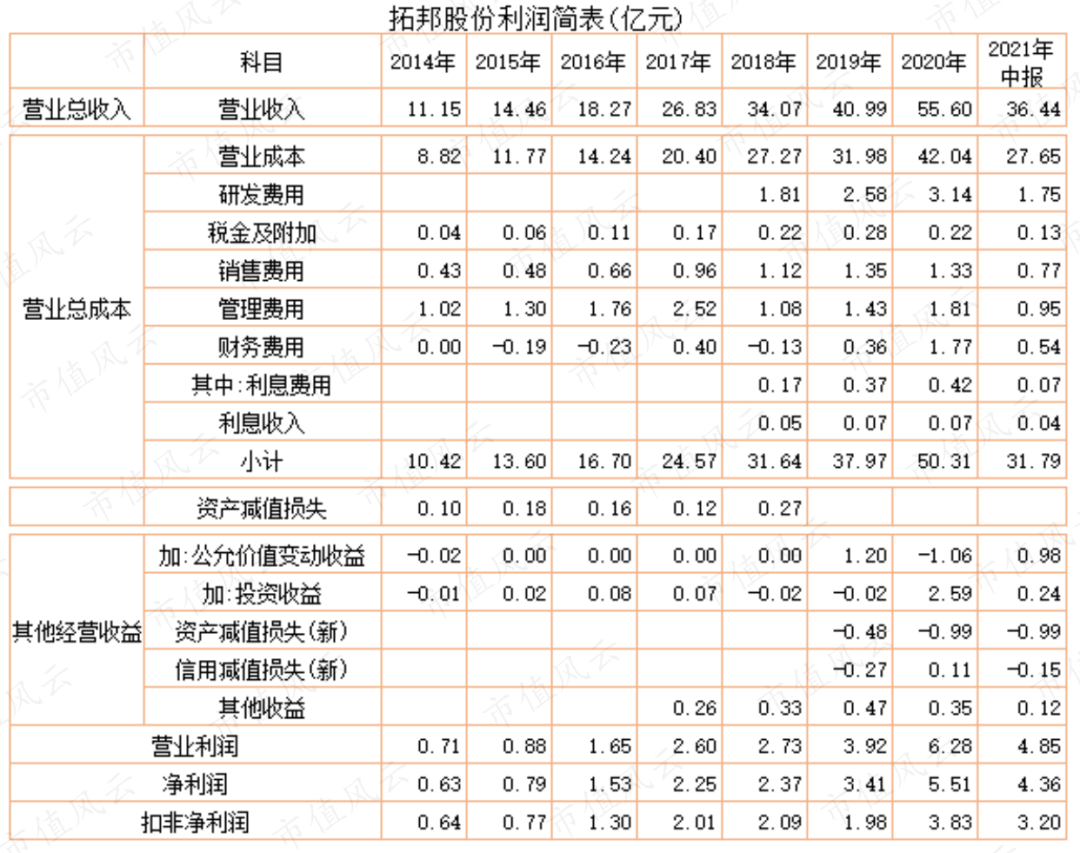 综上来看,拓邦股份的盈利能力一般,毛利率在22%左右,但ROE水平最近两年上升较快。