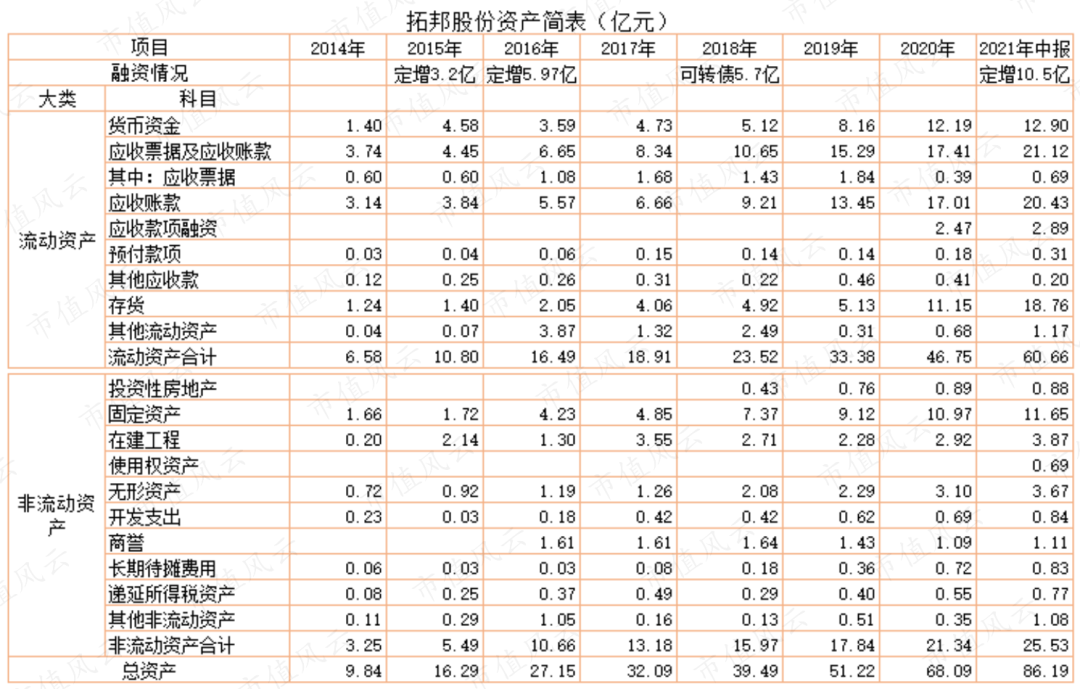 拓邦股份的存货在2021年上半年大幅增加,较年初净增了7.6亿元,增幅达68%。