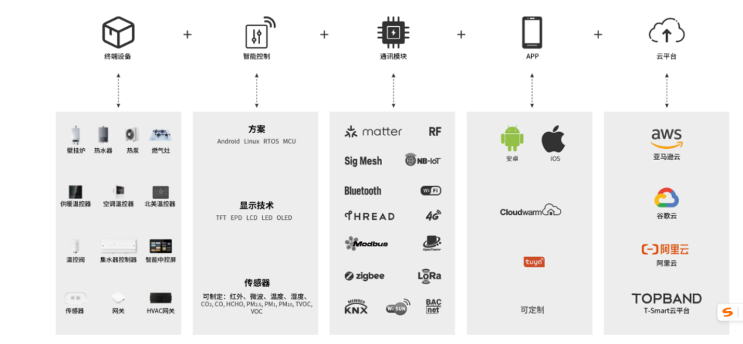 智能温控器、温控阀、HMI交互屏、IoT传感器及网关、执行器;
