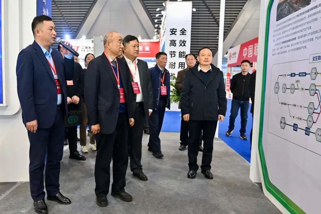 期间,中国石油和化学工业联合会、安徽省化工行业协会、安庆市政府等相关人员莅临东华科技展台参观指导。余伟胜热情接待并重点介绍了东华科技在全生物降解材料上下游产业链上的布局和未来规划,以及全流程综合污染治理服务方面的主要成就。