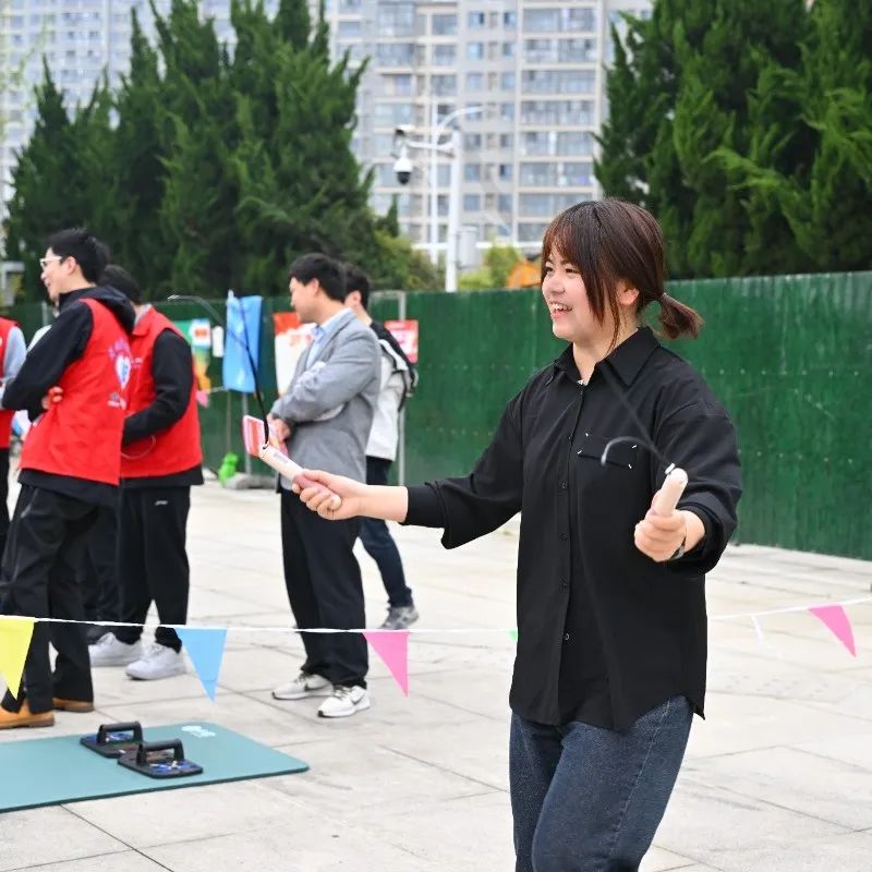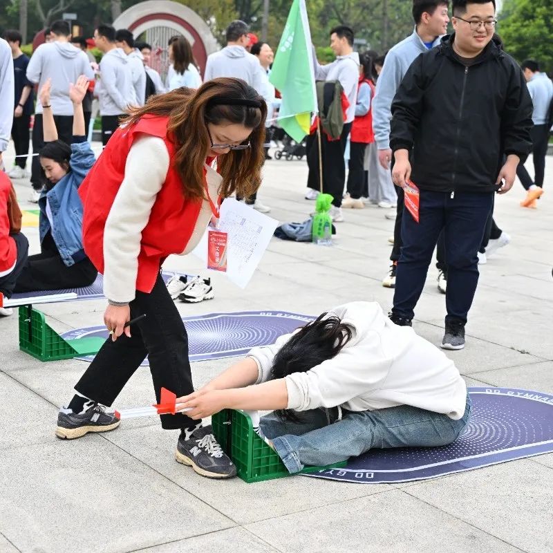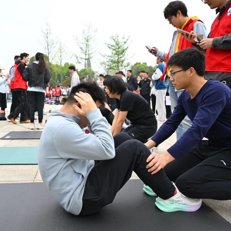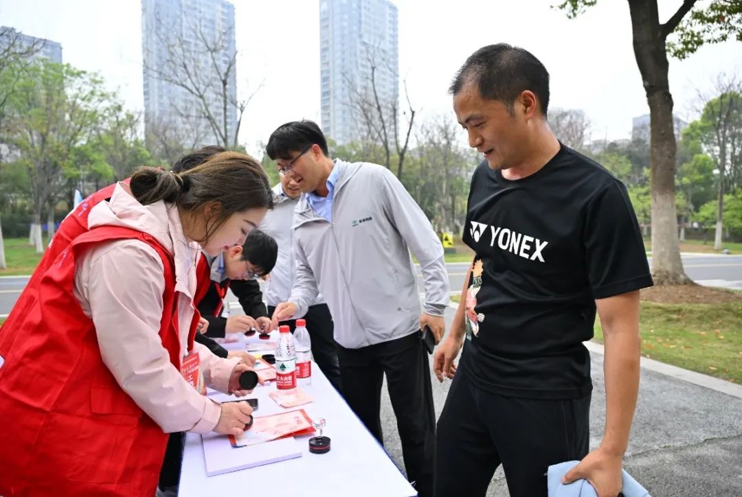 活动开始,各分会队员有序进入赛道起点区,整装待发。他们借地图指示,前往各打卡点,收集打卡徽章。同时,团队竞技也在主会场区域展开,各分会参赛选手就跳绳、俯卧撑、仰卧起坐等项目进行了团队赛和个人赛的激烈比拼。