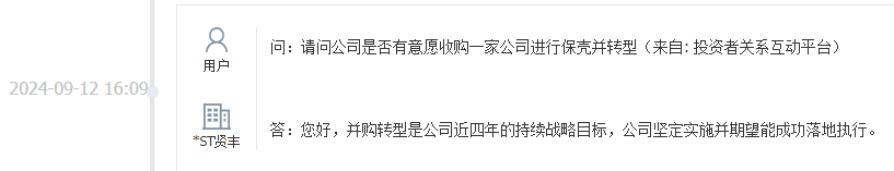 也有多位投资者在互动平台询问相关问题,公司在2024年9月回复一位投资者提问时表示:并购转型是公司近四年的持续战略目标,公司坚定实施并期望能成功落地执行。