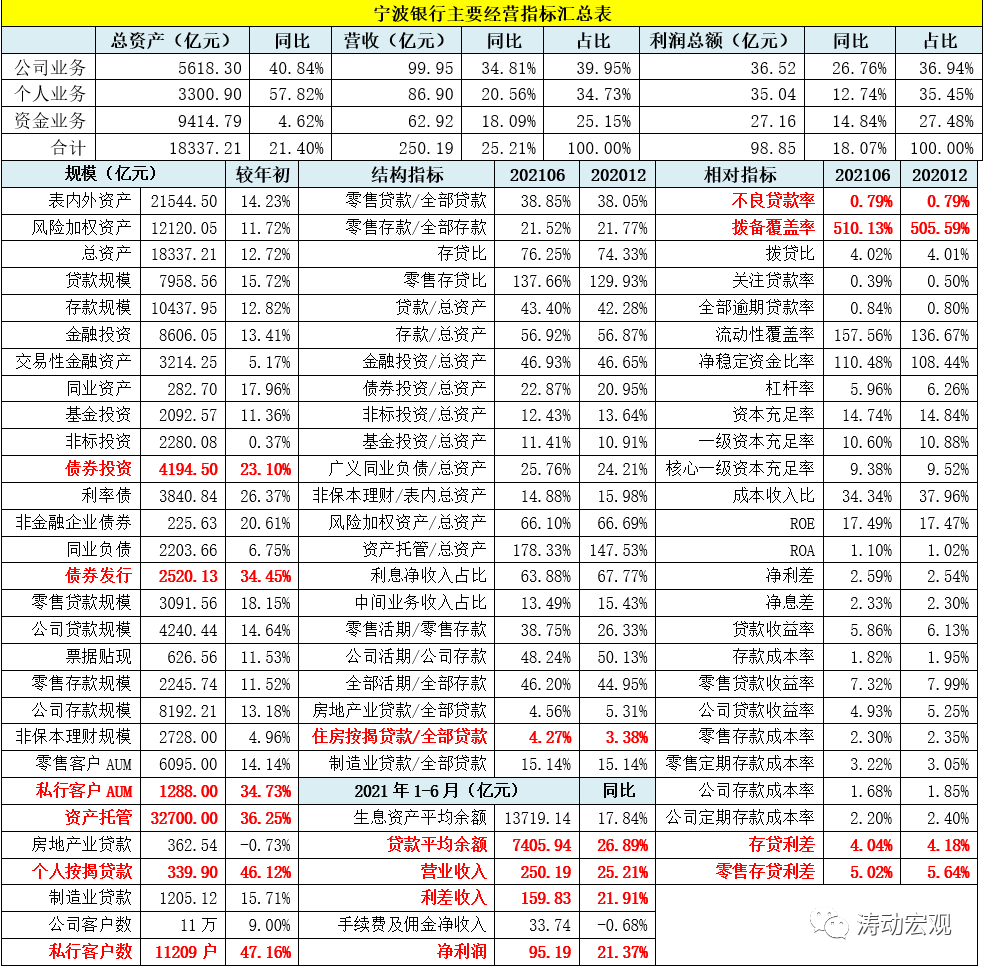 二、宁波银行2021年上半年主要经营情况剖析