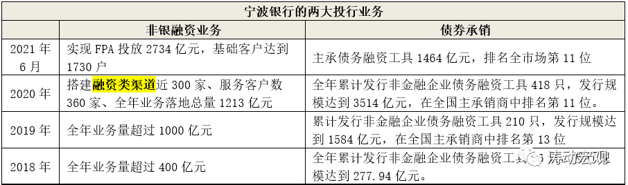 参照招行与兴业银行的做法,宁波银行在2021年半年报中首次公布了FPA数据(即客户融资总规模,关于FPA可以参照“【内部参考283】招行与兴业银行特别重视的FPA是什么?”)。不过宁波银行这里的FPA主要针对投行业务。