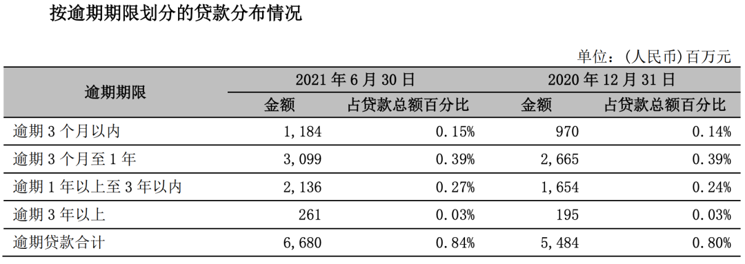 逾期贷款也表现为增长,从上年末的54.84亿元增至6月末的66.8亿元,且各类期限逾期均在增加。