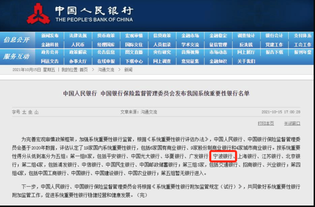 这家资本净额超1862亿元、总资产超1.9万亿元、员工人数超2.4万人的上市银行,10月15日,又出现在了央行和银保监会公布的19家国内系统重要性银行名单中,而这份名单中包括6家国有大行、9家股份行和4家城商行。