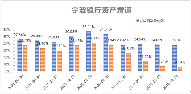 今年以来,信贷需求仍然较为旺盛,贷款同比增速逐季提升:三季度末宁波银行贷款同比增速较二季度末提升0.76百分点至27.64%,而此前一季度末的贷款增速为25.93%,与此同时,总资产的增速也保持了相同的趋势。