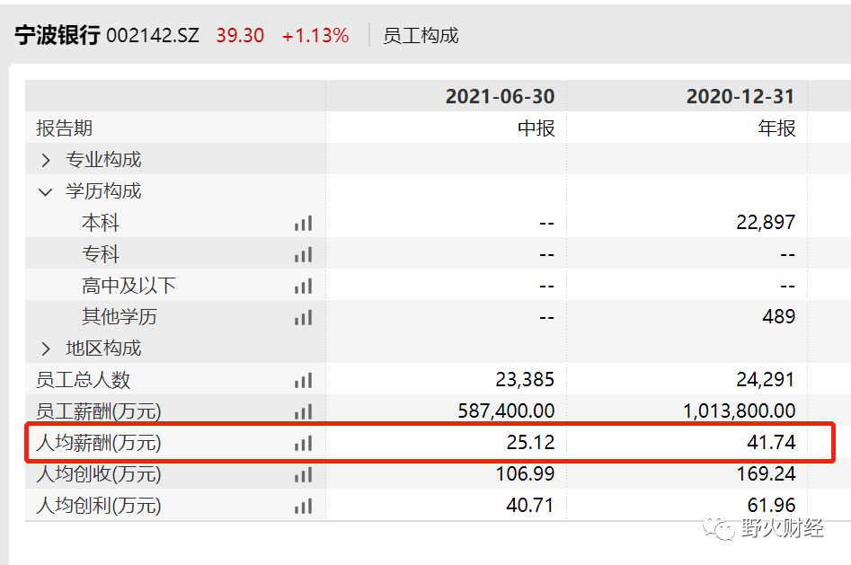 而该行员工薪酬也不菲。2020年人均薪酬近42万元,和2019年相比略有减少;不过2021年上半年人均薪酬25.1万元,全年人均薪酬或有望超过2020年。