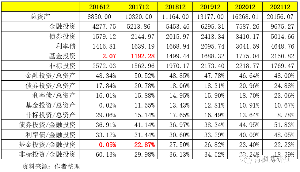 (二)金融投资/总资产:位于45-50%之间,超过50%为债券