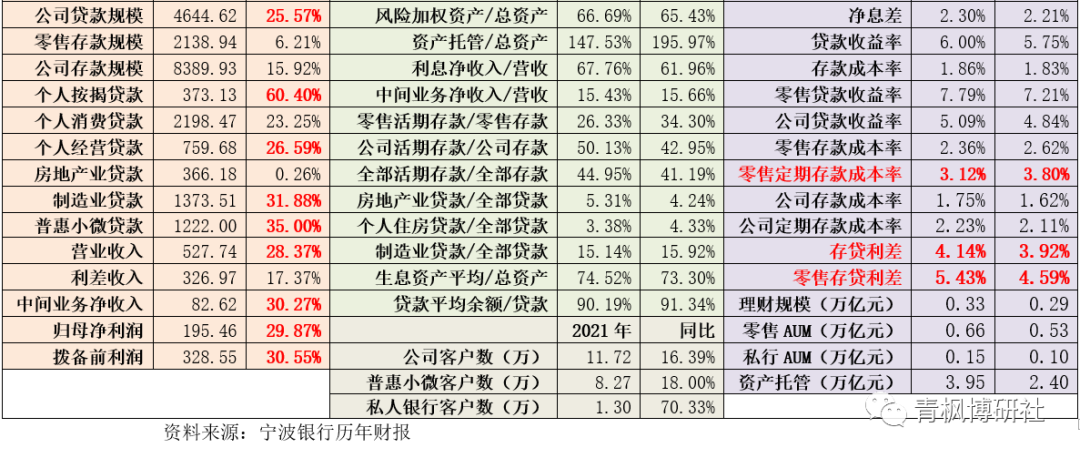 2022年4月7日,宁波银行发布2021年年报。解读如下。