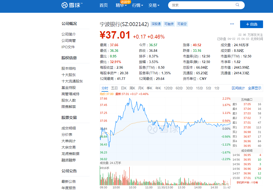 从资产规模上来看,宁波银行目前仅次于北京银行、上海银行和江苏银行;从二级市场的PB值看,宁波银行当前的(4月22日)市净率达1.82倍,高于“零售之王”招行的1.47倍,远超一众头部城商行。