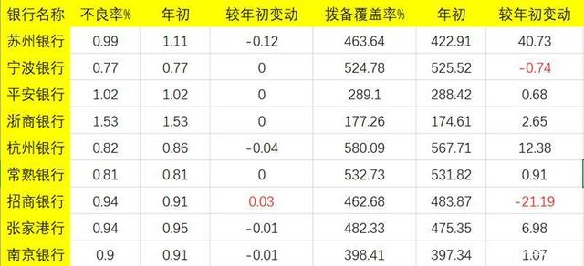 而在资产质量方面,此9家银行表现同样不俗,9家银行中苏州银行、杭州银行、张家港行、南京银行不良率均较年初有所下降,宁波银行、平安银行、浙商银行、常熟银行与年初持平,仅招商银行略有变动。