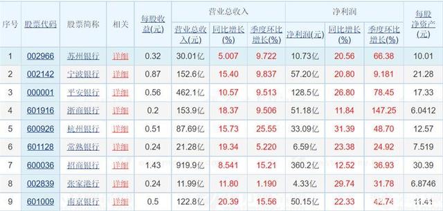 净利润方面,9家银行增速均达10%以上,其中苏州银行、宁波银行、平安银行、杭州银行、常熟银行、张家港行、南京银行7家银行净利润增速已超20%,甚至杭州银行净利润增速已超30%。
