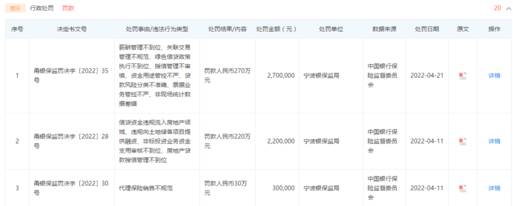 显而易见,宁波银行多次踩了同一个“坑”,但值得思考的是,屡次因若干相同事由被银保监会罚款,宁波银行是否应该适当反思一下呢?