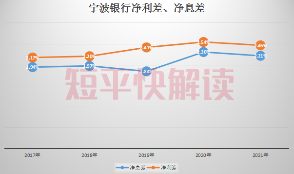 除了净利息收入增速放缓之外,宁波银行的净利差、净息差也出现了不同程度的下滑,分别为2.21%、2.46%,同比分别下降9个基点、8个基点。