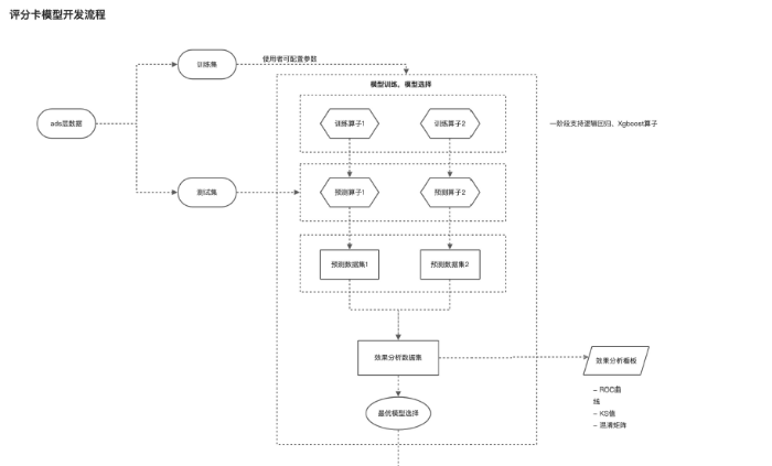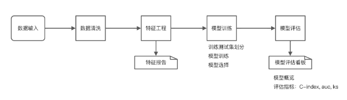 以评分卡插件化为例,摆脱传统建立评分卡复杂的代码设计,让业务通过拖拉拽完成自主建模,产品化后的建模简化为四步:一键数据集替换→“人工+机器学习”特征选择→不同算法模型效果自动对比选择→模型评价指标可视化展示。
