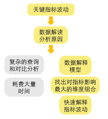一是归因(数据解释),针对传统模式下“业务对报表关键指标波动解读和分析,需要进行复杂查询、对比、制作报告”的痛点,基于博弈论里中经典的Shapley Value理论,从指定业务宽表中各维度出发,对客户客群批量特征进行算法分析,自动搜寻对业务关心指标影响最大的维度组合,快速实现对关键指标波动的解释说明。