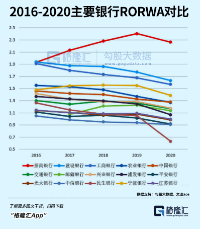 银行盈利能力除了看ROE、ROA指标外,还需要看重要指标RORWA,即风险加权资产收益率(净利润/风险加权资产)。该指标数值越高,说明银行具备更好的长期化解风险和利润分红能力,也具备更强的内生资本增长能力。