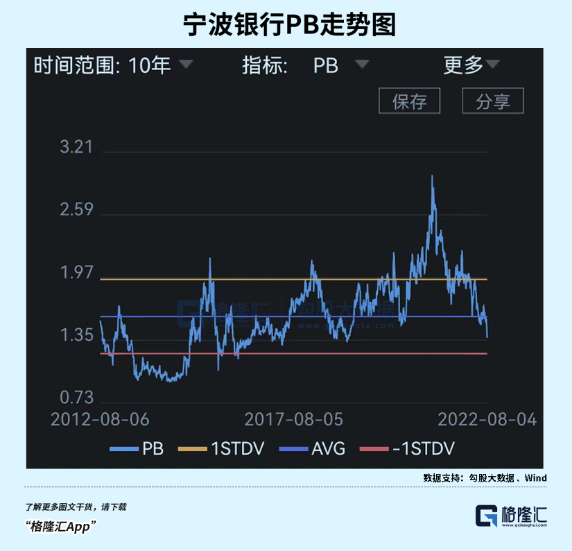 宁波各项指标都比较优异,估值水平水涨船高。当前,PB为1.36倍,位列42家银行之首,远超中证银行指数0.46倍的估值水平。
